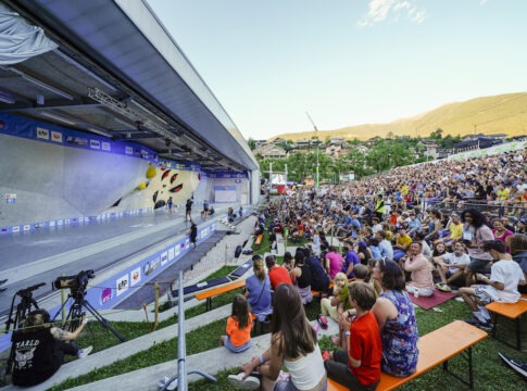 La musica si alza, l’atmosfera si fa calda e sale la tensione per la finalissima di Coppa del Mondo Boulder, nella splendida cornice del Vertikale Climbing Stadium di Bressanone.