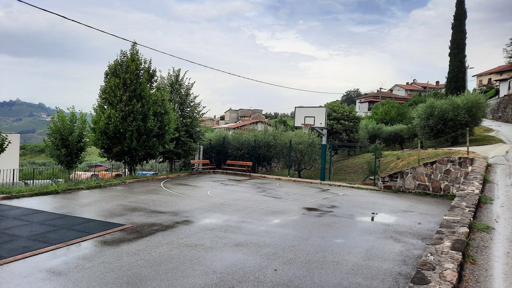 Da Šmartno abbiamo percorso in bici i pochi chilometri che ci separano da Vipolže, sede di una bella villa tardo-rinascimentale utilizzata per congressi, cerimonie ufficiali e private. Prima di varcare il cancello ci fermiamo al bordo di un campo da basket di una piccola scuola. Il paese conta poche anime. La scuola serve parte della Brda. Siamo lontani una ventina di chilometri dalla più grande Nova Gorica, che a sua volta, quando è stata costruita, era ai margini della nazione yugoslava.