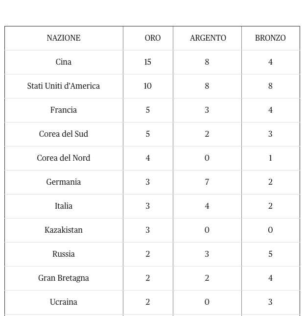 | Paese | ![]() | ![]() | ![]() | ![]() | ||||||